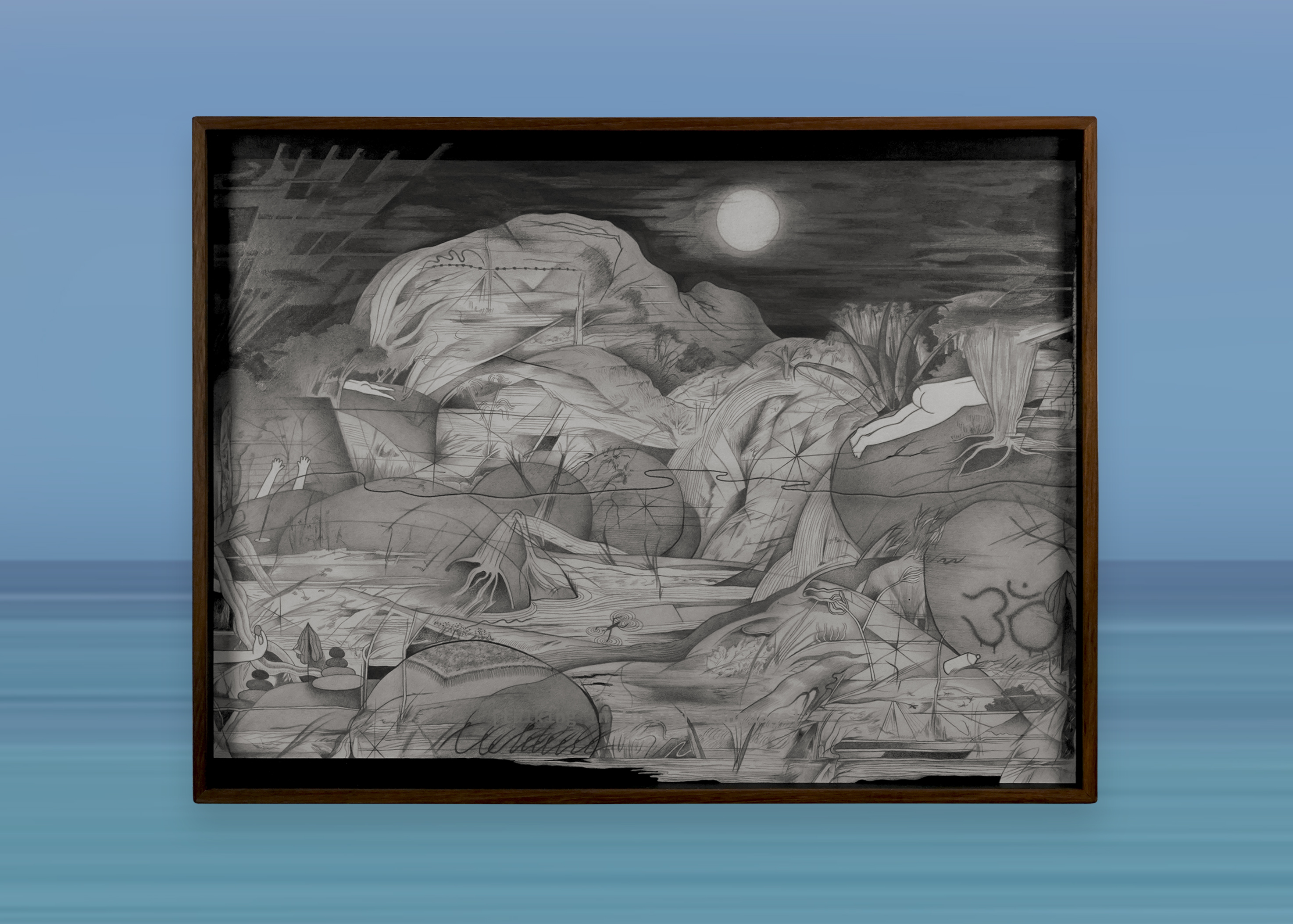 color pencil on paper, wooden frame, glass, 47.4 x 62.2 x 3.5 cm, 2023