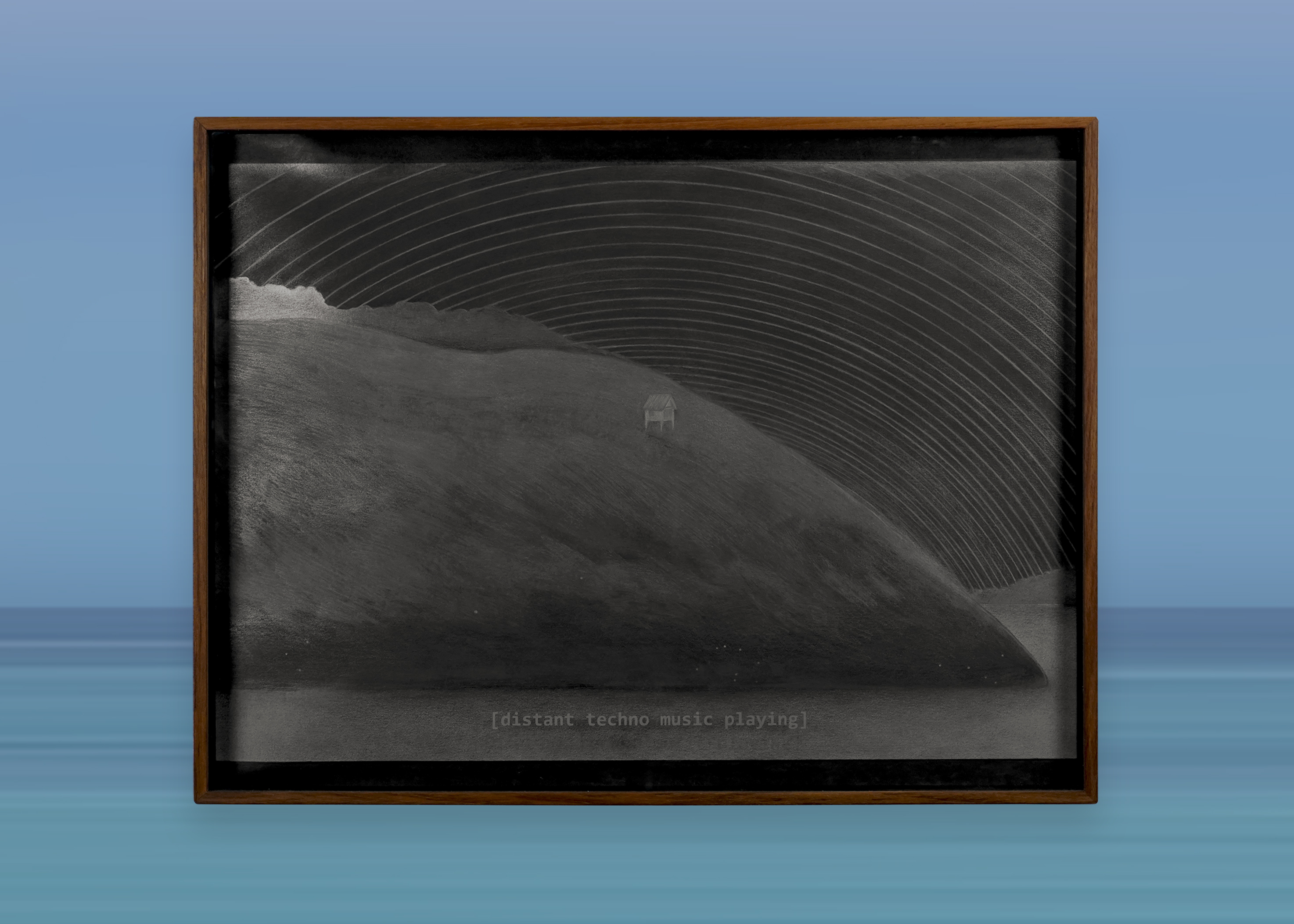 color pencil on paper, wooden frame, etched glass, 47.4 x 62.2 x 3.5 cm, 2023